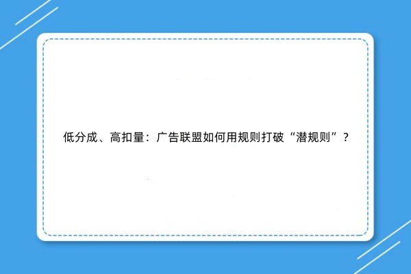 低分成、高扣量:广告联盟如何用规则打破“...