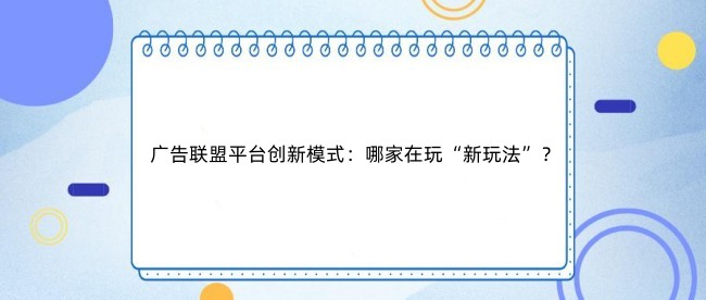 广告联盟平台创新模式:哪家在玩“新玩法”...